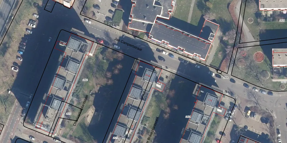 Het perceel waarop Jan Campertstraat 42 staat heeft een oppervlakte van 1025 m². Dit is een zeer groot perceel. De perceeloppervlakte wordt geregistreerd door het Kadaster. Gedetailleerde informatie over de maten van dit perceel kunt u vinden in het rapport Kadastrale kaart met maatvoering van Jan Campertstraat 42.
