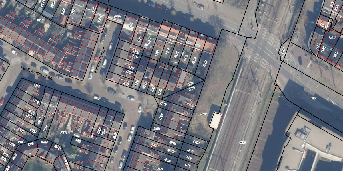 Het perceel waarop Jan Evertsenstraat 13 staat heeft een oppervlakte van 200 m². Dit is een middelgroot perceel. De perceeloppervlakte wordt geregistreerd door het Kadaster. Gedetailleerde informatie over de maten van dit perceel kunt u vinden in het rapport Kadastrale kaart met maatvoering van Jan Evertsenstraat 13.