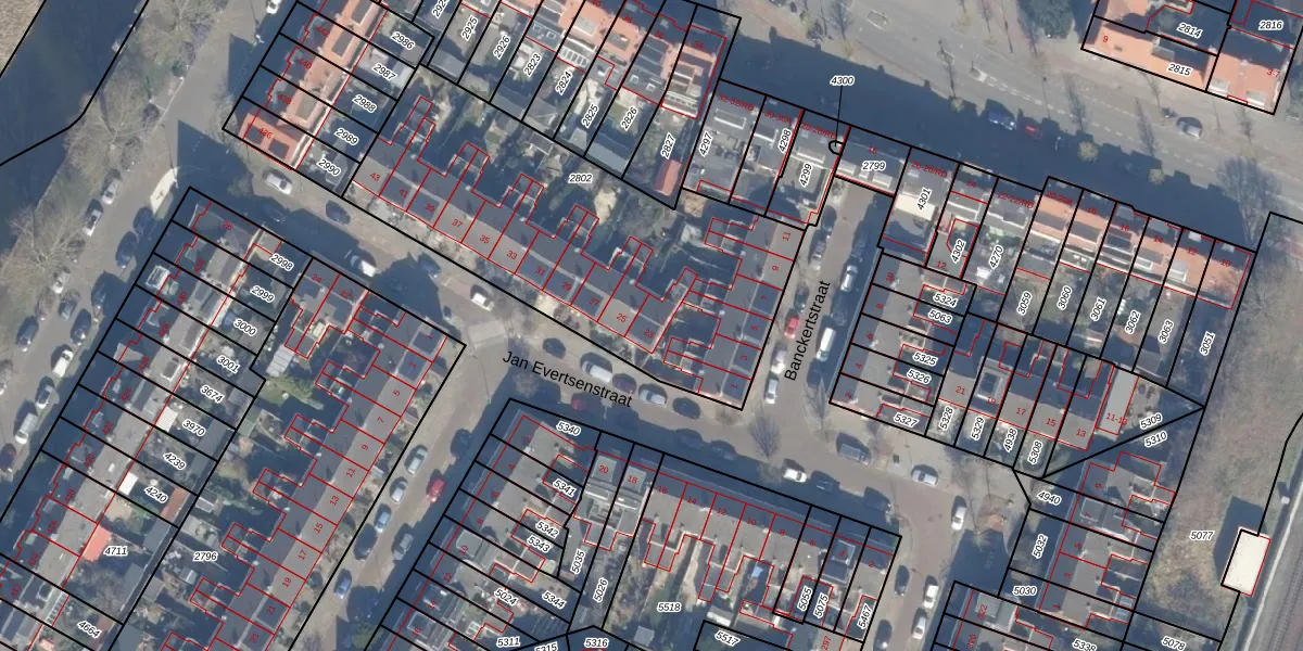 Jan Evertsenstraat 23 is gelegen op kadastraal perceel HLM01I2802. Deze kadastrale aanduiding is uniek en wordt gebruikt door het Kadaster om eigendomsrechten en andere zakelijke rechten vast te leggen. Het perceel maakt onderdeel uit van de kadastrale gemeente Haarlem.