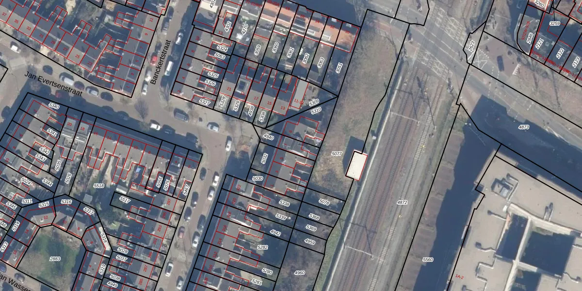 Het perceel waarop Jan Evertsenstraat 7 staat heeft een oppervlakte van 106 m². Dit is een middelgroot perceel. De perceeloppervlakte wordt geregistreerd door het Kadaster. Gedetailleerde informatie over de maten van dit perceel kunt u vinden in het rapport Kadastrale kaart met maatvoering van Jan Evertsenstraat 7.