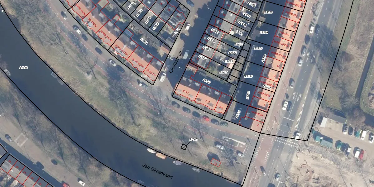 Het perceel waarop Jan Gijzenkade 15 staat heeft een oppervlakte van 587 m². Dit is een groot perceel. De perceeloppervlakte wordt geregistreerd door het Kadaster. Gedetailleerde informatie over de maten van dit perceel kunt u vinden in het rapport Kadastrale kaart met maatvoering van Jan Gijzenkade 15.