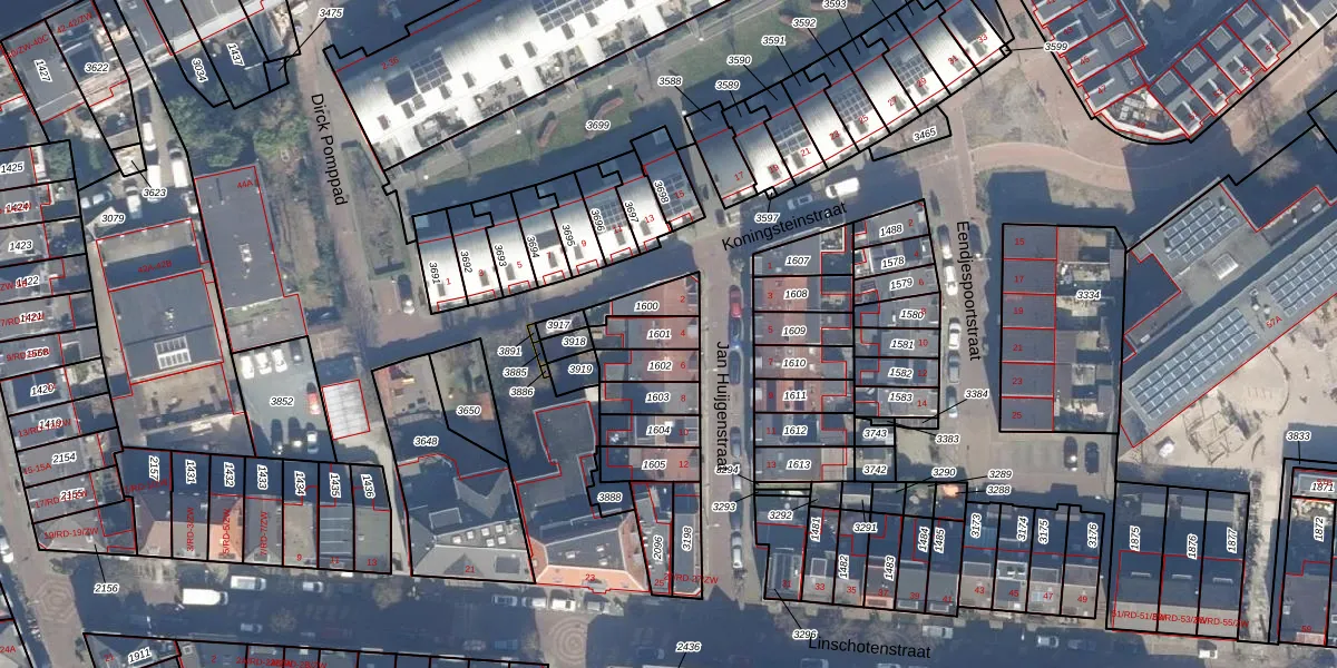 Gebruik de zoekbalk of klik op een perceel voor informatie over de adressen binnen dit perceel.