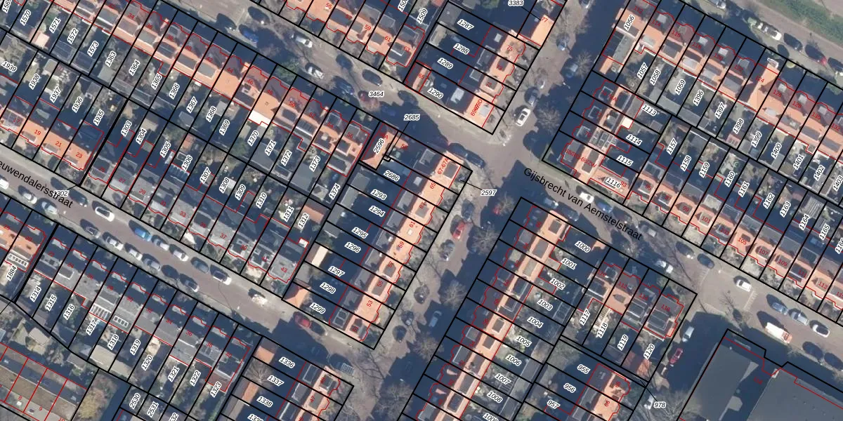 Gebruik de zoekbalk of klik op een perceel voor informatie over de adressen binnen dit perceel.