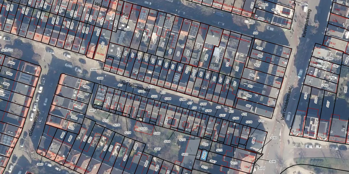 Gebruik de zoekbalk of klik op een perceel voor informatie over de adressen binnen dit perceel.