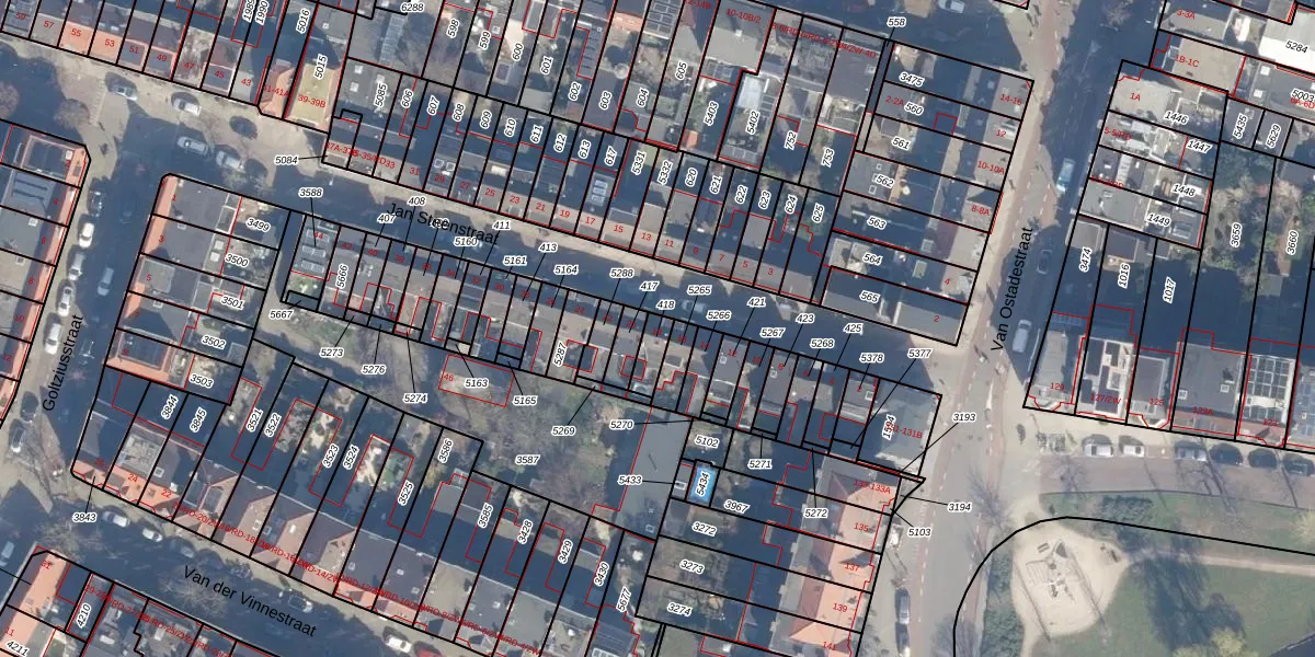 Jan Steenstraat 18 is gelegen op kadastraal perceel HLM01A418. Deze kadastrale aanduiding is uniek en wordt gebruikt door het Kadaster om eigendomsrechten en andere zakelijke rechten vast te leggen. Het perceel maakt onderdeel uit van de kadastrale gemeente Haarlem.