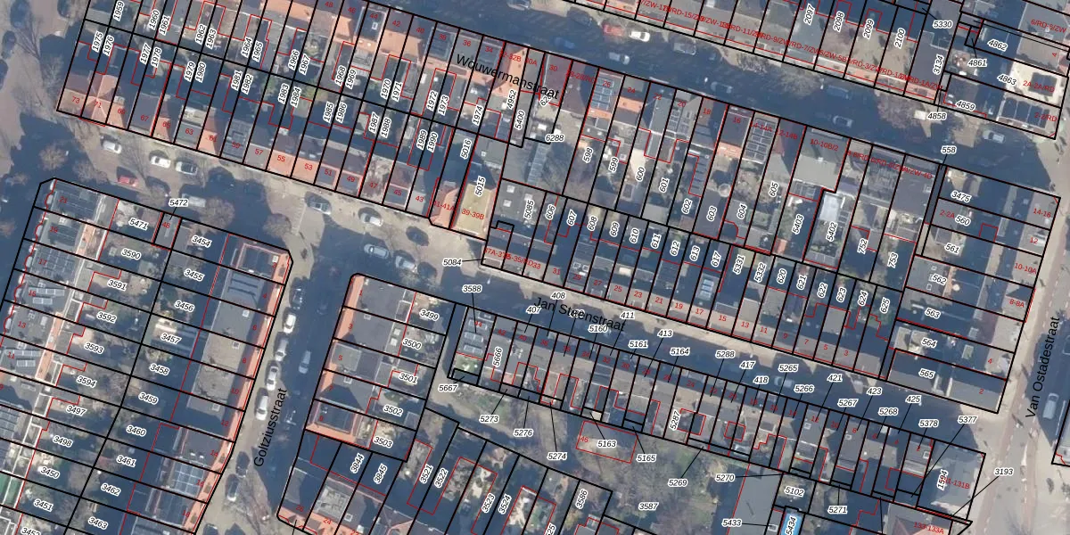 Het perceel waarop Jan Steenstraat 33 staat heeft een oppervlakte van 67 m². Dit is een klein perceel. De perceeloppervlakte wordt geregistreerd door het Kadaster. Gedetailleerde informatie over de maten van dit perceel kunt u vinden in het rapport Kadastrale kaart met maatvoering van Jan Steenstraat 33.