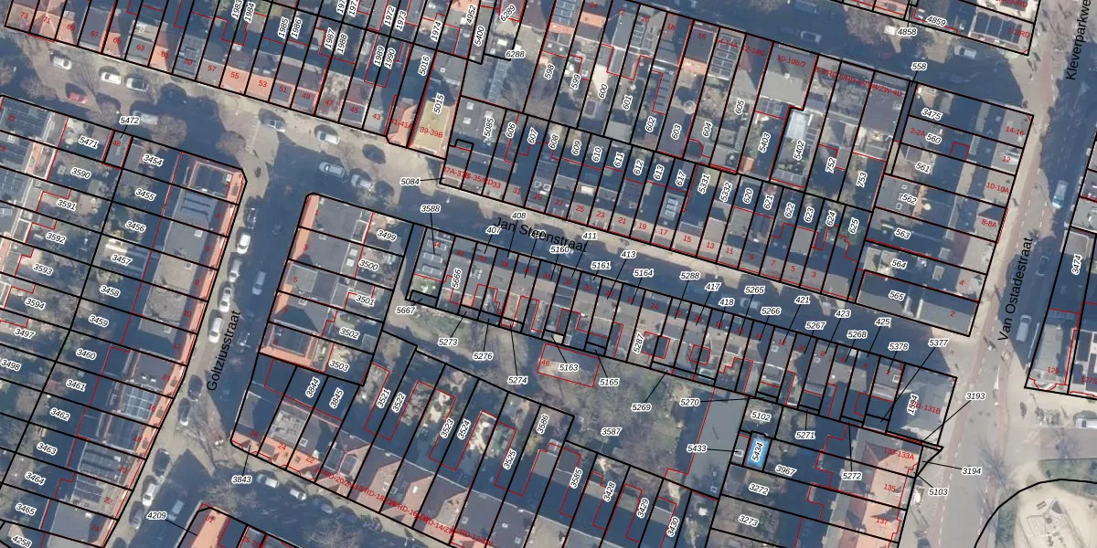 Het perceel waarop Jan Steenstraat 34 staat heeft een oppervlakte van 55 m². Dit is een klein perceel. De perceeloppervlakte wordt geregistreerd door het Kadaster. Gedetailleerde informatie over de maten van dit perceel kunt u vinden in het rapport Kadastrale kaart met maatvoering van Jan Steenstraat 34.