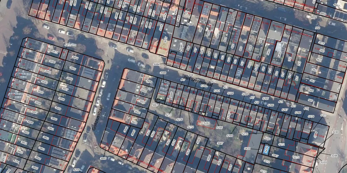 Het perceel waarop Jan Steenstraat 42 staat heeft een oppervlakte van 54 m². Dit is een klein perceel. De perceeloppervlakte wordt geregistreerd door het Kadaster. Gedetailleerde informatie over de maten van dit perceel kunt u vinden in het rapport Kadastrale kaart met maatvoering van Jan Steenstraat 42.