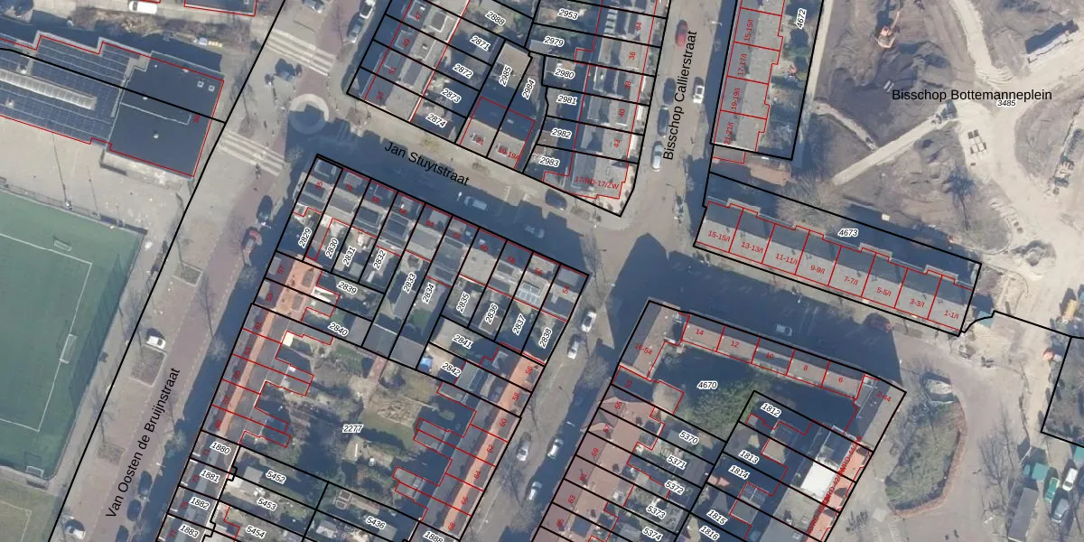 Het perceel waarop Jan Stuytstraat 56 staat heeft een oppervlakte van 100 m². Dit is een middelgroot perceel. De perceeloppervlakte wordt geregistreerd door het Kadaster. Gedetailleerde informatie over de maten van dit perceel kunt u vinden in het rapport Kadastrale kaart met maatvoering van Jan Stuytstraat 56.