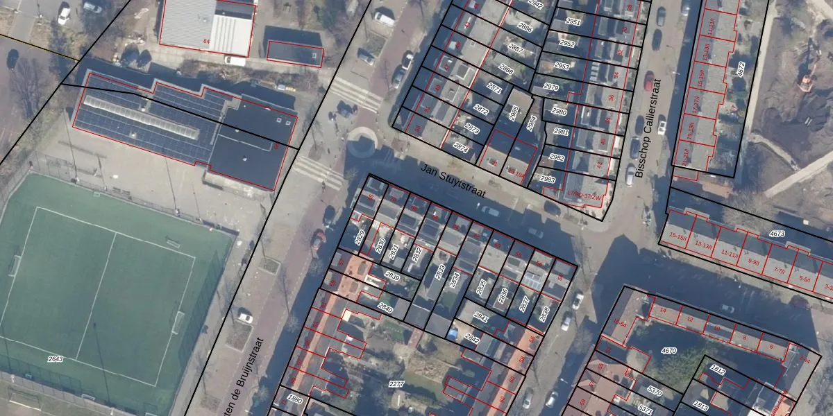 Gebruik de zoekbalk of klik op een perceel voor informatie over de adressen binnen dit perceel.