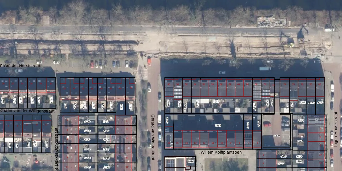 Het adres ligt op het perceel HLM02-P-3660, dat zich in de kadastrale gemeente Haarlem bevindt. Het perceel is kleiner dan gemiddeld in Haarlem. Het perceel is 113 m² groot, terwijl het gemiddelde ligt op 1123,97 m². De grootste perceeloppervlakte in de kadastrale gemeente is 46,4 ha. De kleinste oppervlakte bedraagt 0 m². Dit is het enige adres dat aanwezig is op het perceel. In de Basisregistratie Kadaster (BRK) werden de grenzen van het perceel geregistreerd op 14-12-2011.
