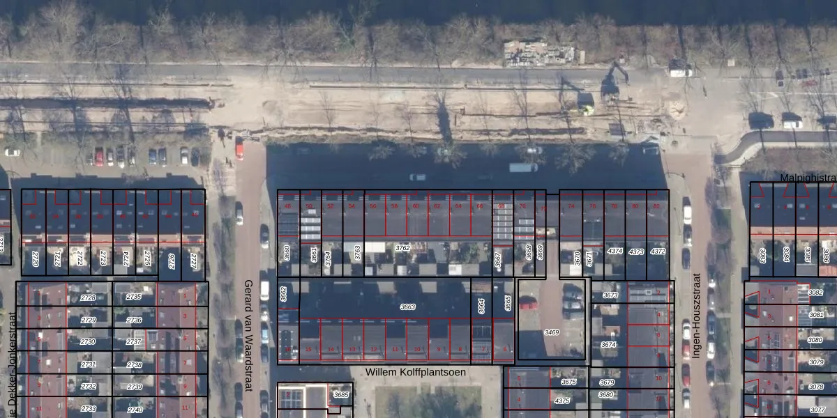 Het perceel waarop Jan van der Horststraat 60 staat heeft een oppervlakte van 639 m². Dit is een groot perceel. De perceeloppervlakte wordt geregistreerd door het Kadaster. Gedetailleerde informatie over de maten van dit perceel kunt u vinden in het rapport Kadastrale kaart met maatvoering van Jan van der Horststraat 60.