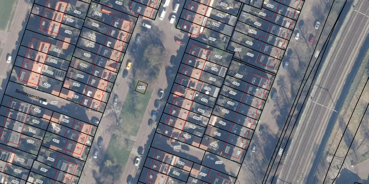 Het adres is gelegen op perceel 3154 in de sectie T en de kadastrale gemeente Haarlem. De kadastrale aanduiding is aldus HLM02-T-3154. Het perceel is 147 m² groot. Dat is kleiner dan de gemiddelde perceeloppervlakte in Haarlem, dat op 1124,3 m² ligt. Het grootste perceel in de kadastrale gemeente is 46,4 ha. Het kleinste perceel heeft een oppervlakte van 0 m². Er zijn geen andere adressen aanwezig op het perceel. De laatste wijziging in het de Basisregistratie Kadaster (BRK) was op 14-09-2001.