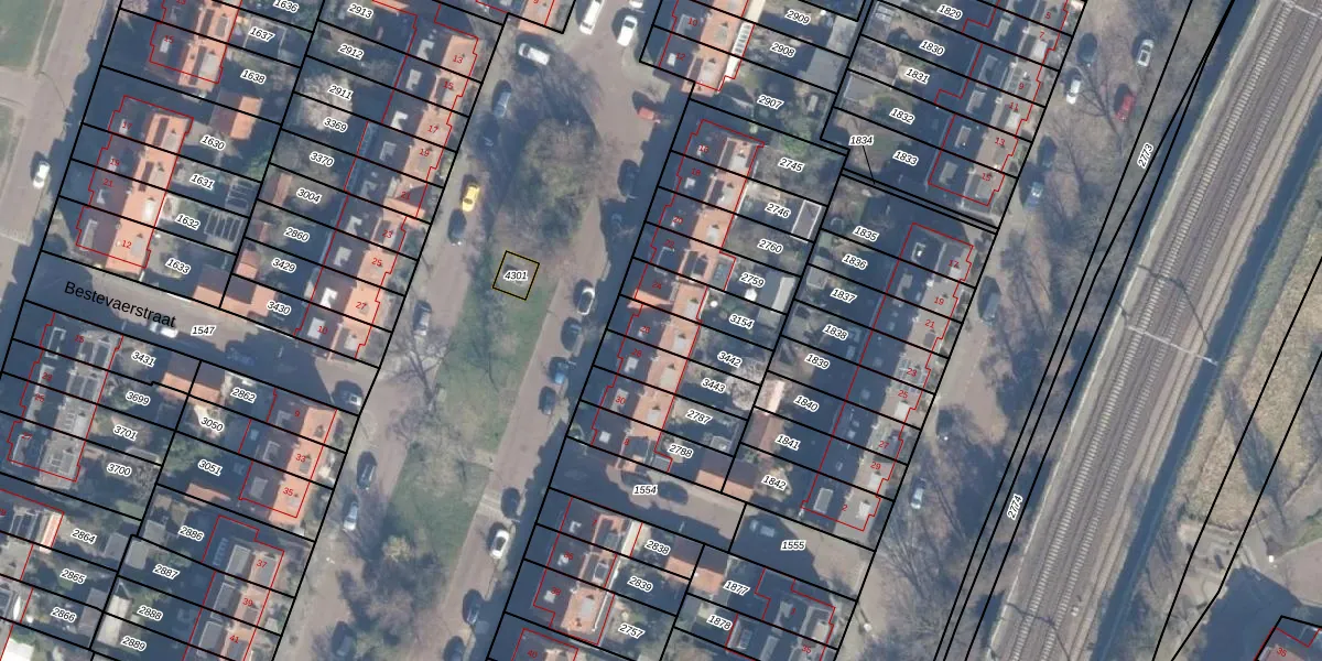 Het adres is gelegen op perceel 3442 in de sectie T en de kadastrale gemeente Haarlem. De kadastrale aanduiding is aldus HLM02-T-3442. Het perceel is 144 m² groot. Dat is kleiner dan de gemiddelde perceeloppervlakte in Haarlem, dat op 1124,3 m² ligt. Het grootste perceel in de kadastrale gemeente is 46,4 ha. Het kleinste perceel heeft een oppervlakte van 0 m². Er zijn geen andere adressen aanwezig op het perceel. De huidige grenzen van het perceel zijn digitaal in de Basisregistratie Kadaster (BRK) geregistreerd op 14-09-2001.