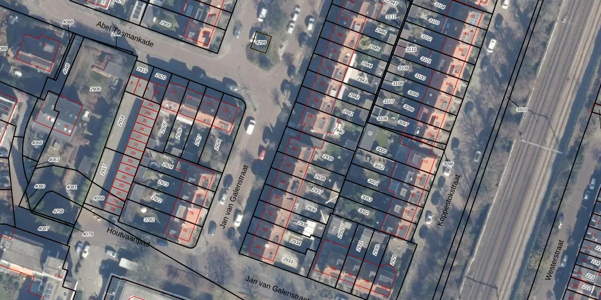 Het perceel waarop Jan van Galenstraat 80 staat heeft een oppervlakte van 218 m². Dit is een middelgroot perceel. De perceeloppervlakte wordt geregistreerd door het Kadaster. Gedetailleerde informatie over de maten van dit perceel kunt u vinden in het rapport Kadastrale kaart met maatvoering van Jan van Galenstraat 80.