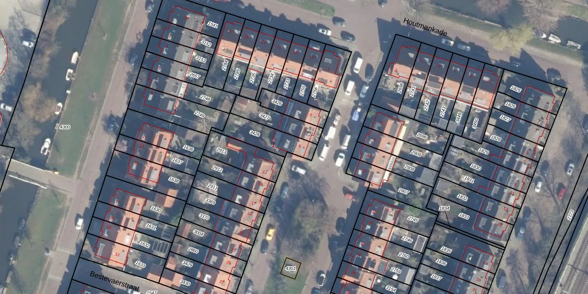 Het adres is gelegen op perceel 3428 in de sectie T en de kadastrale gemeente Haarlem. De kadastrale aanduiding is aldus HLM02-T-3428. Het perceel is 239 m² groot. Dat is kleiner dan de gemiddelde perceeloppervlakte in Haarlem, dat op 1123,97 m² ligt. Het grootste perceel in de kadastrale gemeente is 46,4 ha. Het kleinste perceel heeft een oppervlakte van 0 m². Op het perceel bevinden zich geen andere adressen. De huidige grenzen van het perceel zijn digitaal in de Basisregistratie Kadaster (BRK) geregistreerd op 14-09-2001.