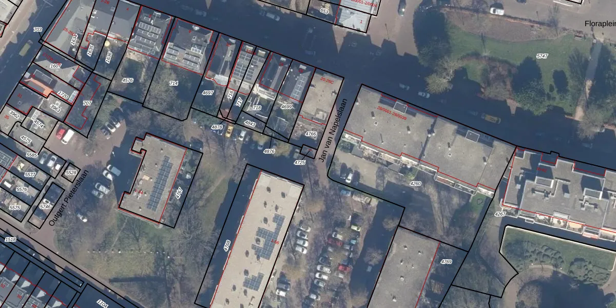Jan van Napelslaan 1 is gelegen op kadastraal perceel HLM01I4725. Deze kadastrale aanduiding is uniek en wordt gebruikt door het Kadaster om eigendomsrechten en andere zakelijke rechten vast te leggen. Het perceel maakt onderdeel uit van de kadastrale gemeente Haarlem.