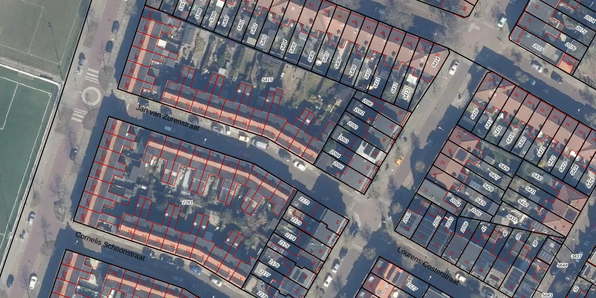 Jan van Zurenstraat 5 is gelegen op kadastraal perceel HLM01I5415. Deze kadastrale aanduiding is uniek en wordt gebruikt door het Kadaster om eigendomsrechten en andere zakelijke rechten vast te leggen. Het perceel maakt onderdeel uit van de kadastrale gemeente Haarlem.
