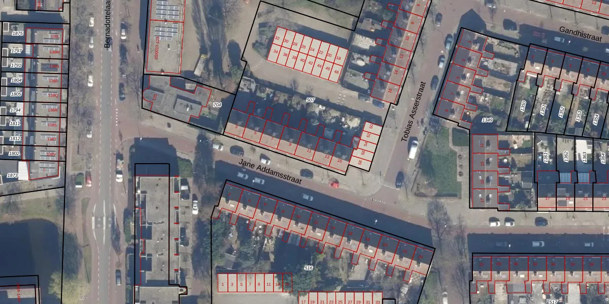 Het perceel waarop Jane Addamsstraat 11 staat heeft een oppervlakte van 2944 m². Dit is een zeer groot perceel. De perceeloppervlakte wordt geregistreerd door het Kadaster. Gedetailleerde informatie over de maten van dit perceel kunt u vinden in het rapport Kadastrale kaart met maatvoering van Jane Addamsstraat 11.