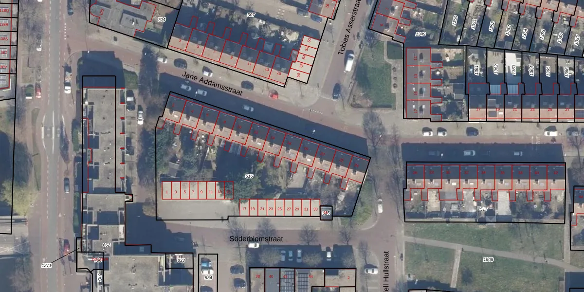 Jane Addamsstraat 16 is gelegen op kadastraal perceel HLM02X516. Deze kadastrale aanduiding is uniek en wordt gebruikt door het Kadaster om eigendomsrechten en andere zakelijke rechten vast te leggen. Het perceel maakt onderdeel uit van de kadastrale gemeente Haarlem.