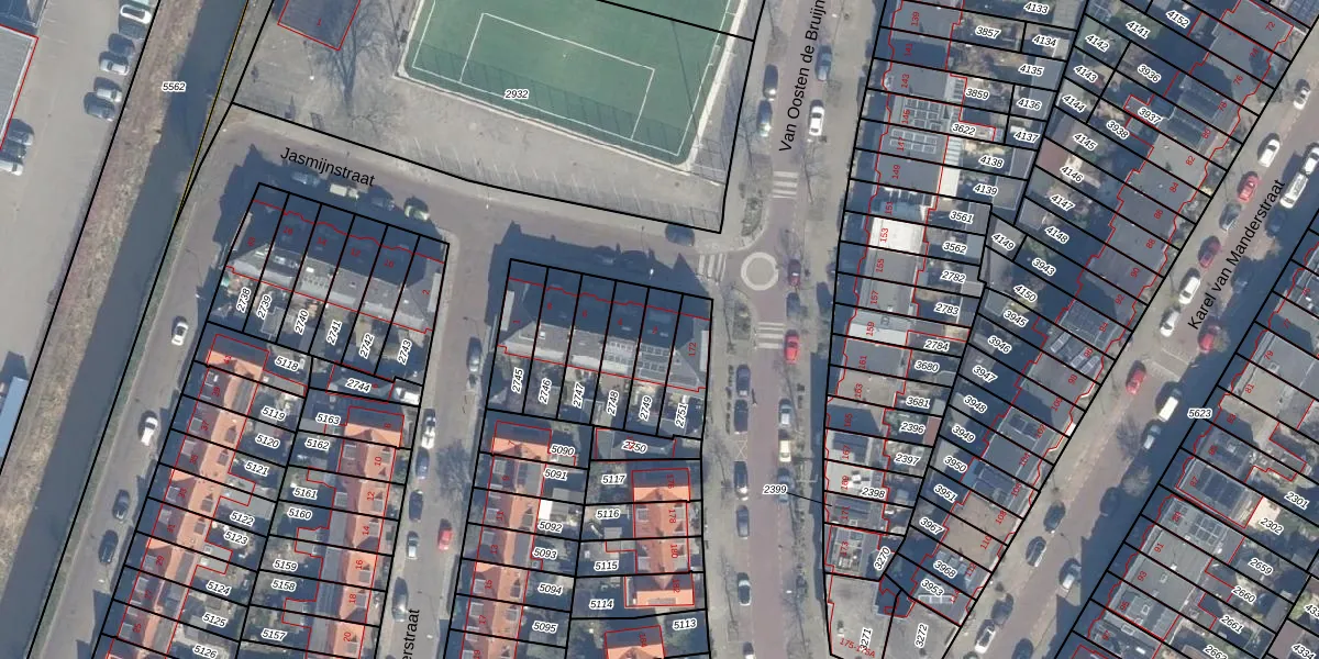Het perceel waarop Jasmijnstraat 2 staat heeft een oppervlakte van 115 m². Dit is een middelgroot perceel. De perceeloppervlakte wordt geregistreerd door het Kadaster. Gedetailleerde informatie over de maten van dit perceel kunt u vinden in het rapport Kadastrale kaart met maatvoering van Jasmijnstraat 2.