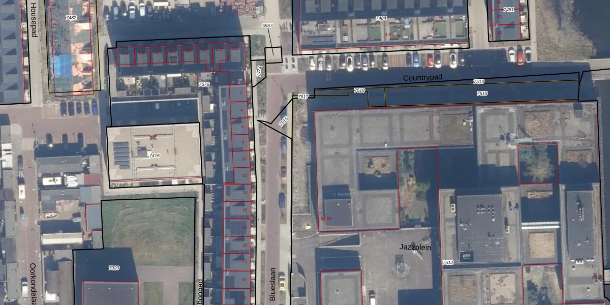 Het perceel waarop Jazzplein 14 staat heeft een oppervlakte van 1,1 ha. Dit is een zeer groot perceel. De perceeloppervlakte wordt geregistreerd door het Kadaster. Gedetailleerde informatie over de maten van dit perceel kunt u vinden in het rapport Kadastrale kaart met maatvoering van Jazzplein 14.