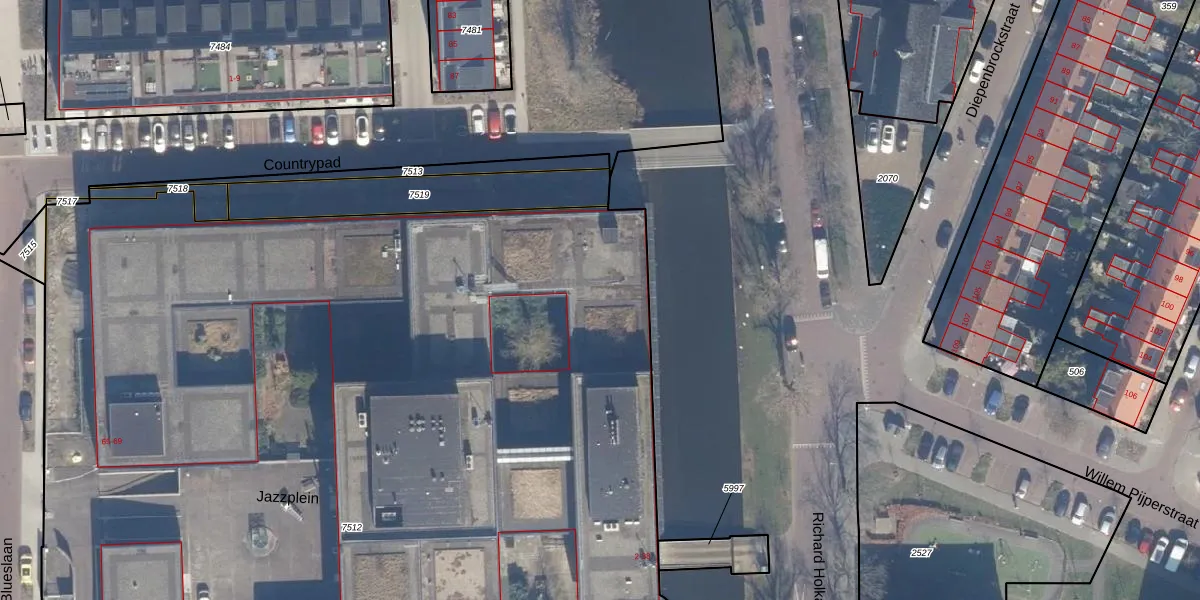 Het perceel waarop Jazzplein 168 staat heeft een oppervlakte van 1,1 ha. Dit is een zeer groot perceel. De perceeloppervlakte wordt geregistreerd door het Kadaster. Gedetailleerde informatie over de maten van dit perceel kunt u vinden in het rapport Kadastrale kaart met maatvoering van Jazzplein 168.