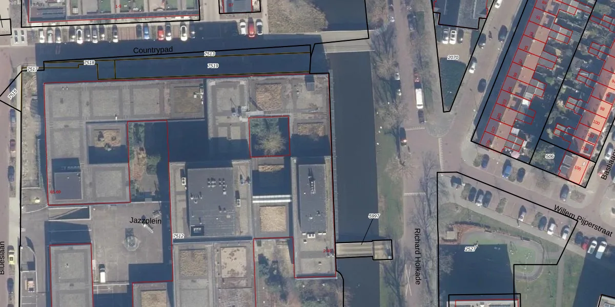 Het perceel waarop Jazzplein 182 staat heeft een oppervlakte van 1,1 ha. Dit is een zeer groot perceel. De perceeloppervlakte wordt geregistreerd door het Kadaster. Gedetailleerde informatie over de maten van dit perceel kunt u vinden in het rapport Kadastrale kaart met maatvoering van Jazzplein 182.
