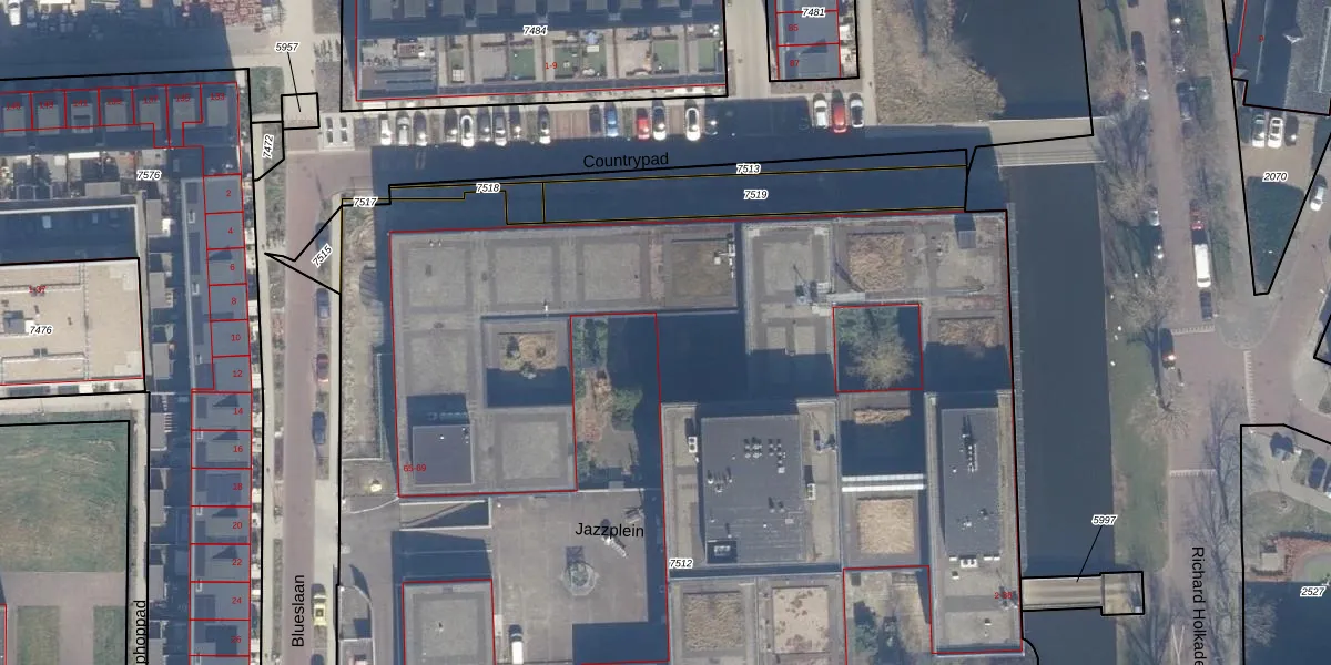 Het perceel waarop Jazzplein 59 staat heeft een oppervlakte van 1,1 ha. Dit is een zeer groot perceel. De perceeloppervlakte wordt geregistreerd door het Kadaster. Gedetailleerde informatie over de maten van dit perceel kunt u vinden in het rapport Kadastrale kaart met maatvoering van Jazzplein 59.