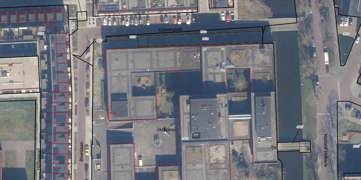 Het perceel waarop Jazzplein 89 staat heeft een oppervlakte van 1,1 ha. Dit is een zeer groot perceel. De perceeloppervlakte wordt geregistreerd door het Kadaster. Gedetailleerde informatie over de maten van dit perceel kunt u vinden in het rapport Kadastrale kaart met maatvoering van Jazzplein 89.