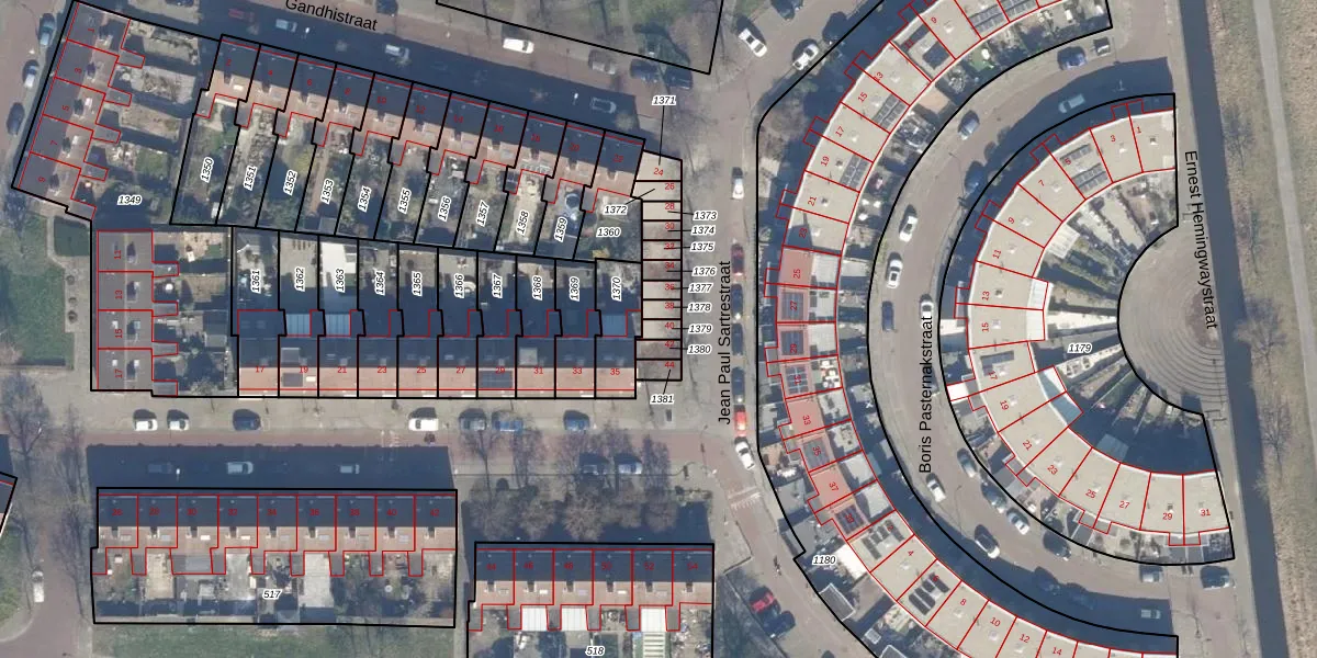 Het perceel waarop Jean Paul Sartrestraat 40 staat heeft een oppervlakte van 19 m². Dit is een klein perceel. De perceeloppervlakte wordt geregistreerd door het Kadaster. Gedetailleerde informatie over de maten van dit perceel kunt u vinden in het rapport Kadastrale kaart met maatvoering van Jean Paul Sartrestraat 40.