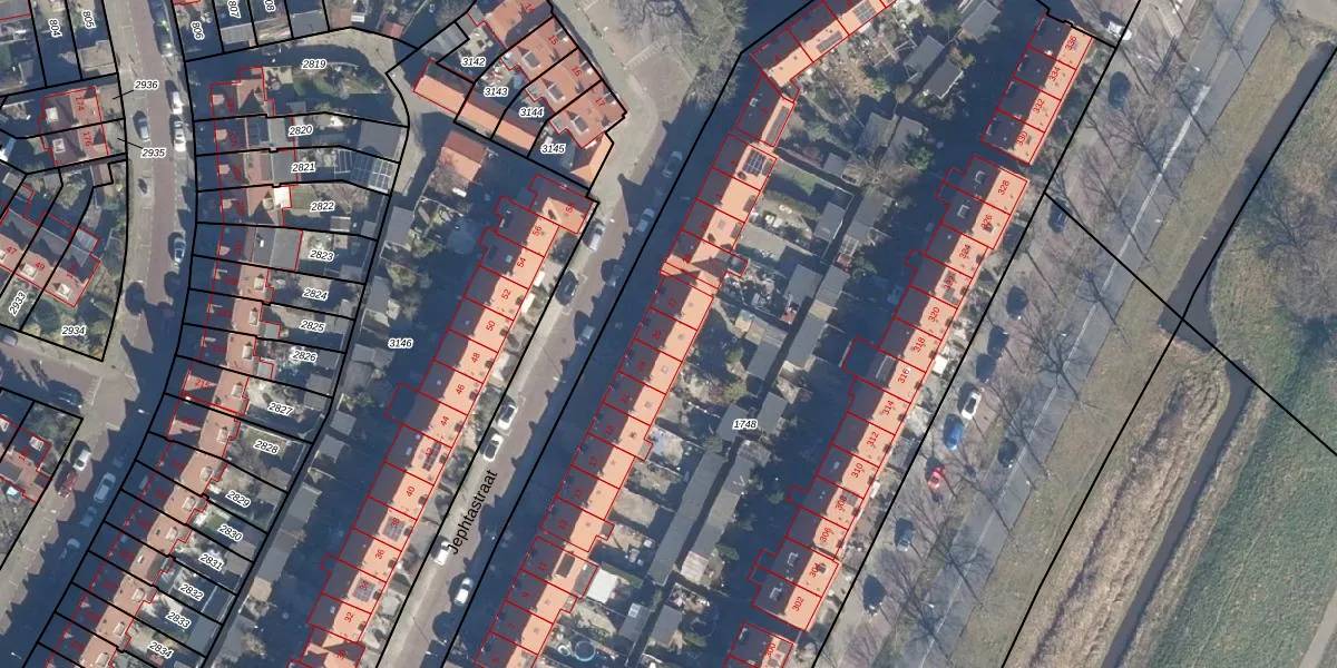 Het perceel waarop Jephtastraat 25 staat heeft een oppervlakte van 7530 m². Dit is een zeer groot perceel. De perceeloppervlakte wordt geregistreerd door het Kadaster. Gedetailleerde informatie over de maten van dit perceel kunt u vinden in het rapport Kadastrale kaart met maatvoering van Jephtastraat 25.