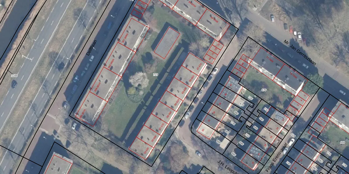 Het perceel waarop J.H. Leopoldstraat 63-I staat heeft een oppervlakte van 5505 m². Dit is een zeer groot perceel. De perceeloppervlakte wordt geregistreerd door het Kadaster. Gedetailleerde informatie over de maten van dit perceel kunt u vinden in het rapport Kadastrale kaart met maatvoering van J.H. Leopoldstraat 63-I.