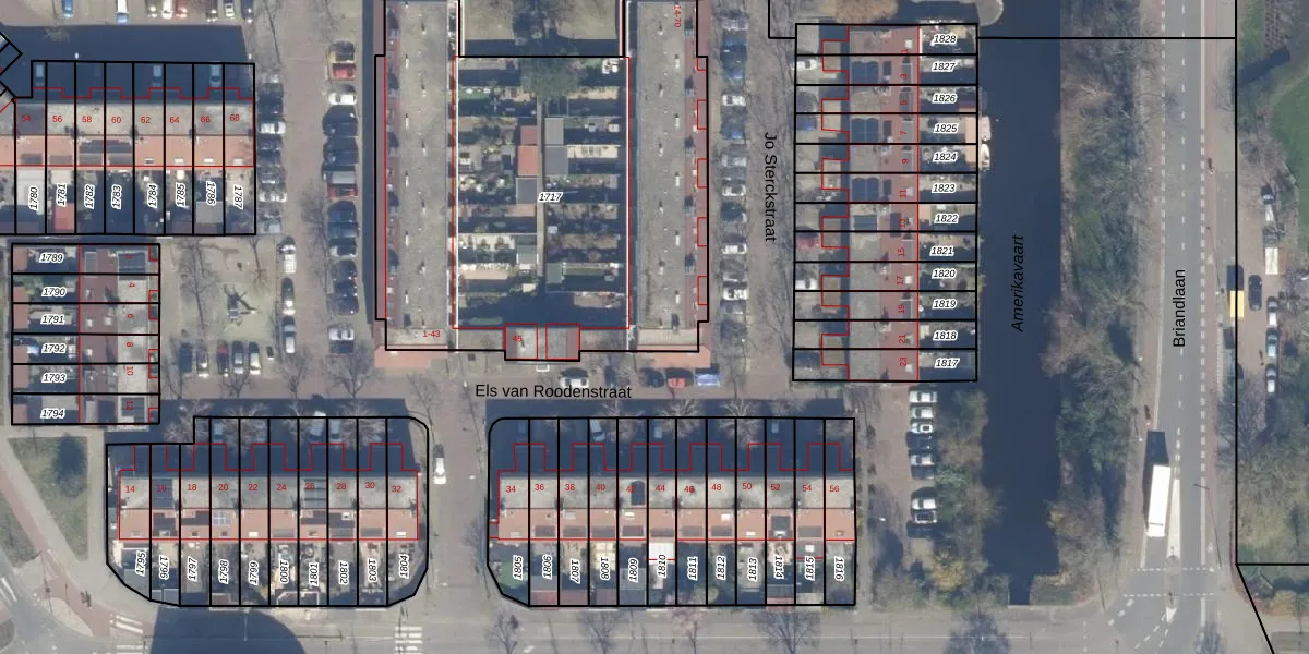 Het perceel waarop Jo Sterckstraat 68 staat heeft een oppervlakte van 2513 m². Dit is een zeer groot perceel. De perceeloppervlakte wordt geregistreerd door het Kadaster. Gedetailleerde informatie over de maten van dit perceel kunt u vinden in het rapport Kadastrale kaart met maatvoering van Jo Sterckstraat 68.
