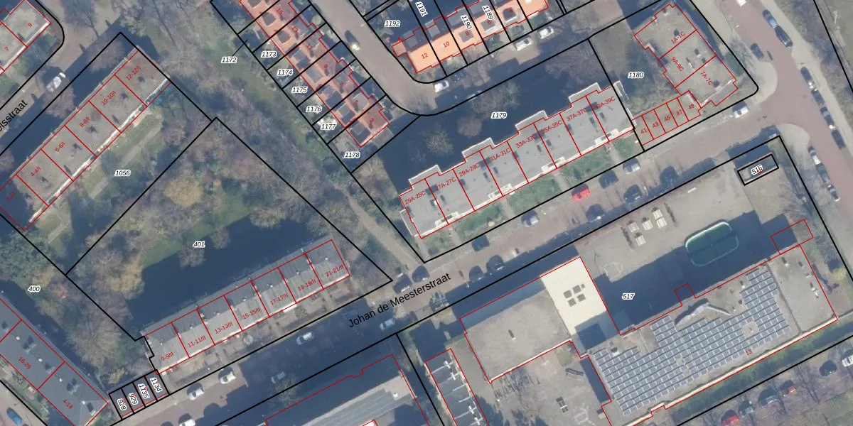Het perceel waarop Johan de Meesterstraat 25-B staat heeft een oppervlakte van 1823 m². Dit is een zeer groot perceel. De perceeloppervlakte wordt geregistreerd door het Kadaster. Gedetailleerde informatie over de maten van dit perceel kunt u vinden in het rapport Kadastrale kaart met maatvoering van Johan de Meesterstraat 25-B.