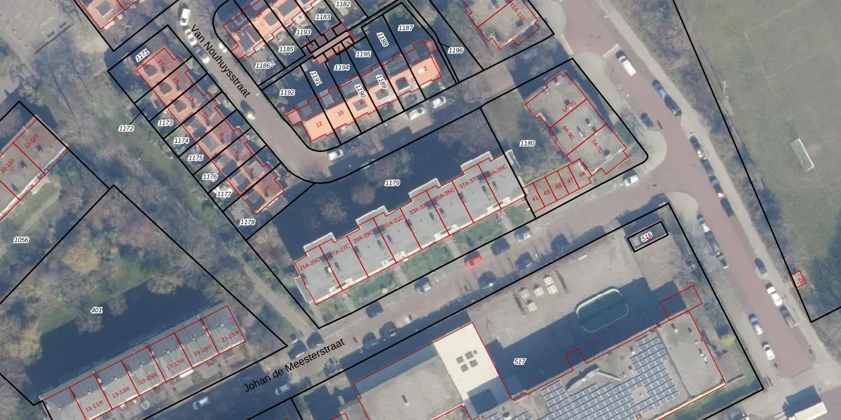 Het perceel waarop Johan de Meesterstraat 33-C staat heeft een oppervlakte van 1823 m². Dit is een zeer groot perceel. De perceeloppervlakte wordt geregistreerd door het Kadaster. Gedetailleerde informatie over de maten van dit perceel kunt u vinden in het rapport Kadastrale kaart met maatvoering van Johan de Meesterstraat 33-C.