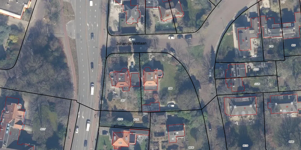 Johan de Wittlaan 21 is gelegen op kadastraal perceel HLM02R288. Deze kadastrale aanduiding is uniek en wordt gebruikt door het Kadaster om eigendomsrechten en andere zakelijke rechten vast te leggen. Het perceel maakt onderdeel uit van de kadastrale gemeente Haarlem.