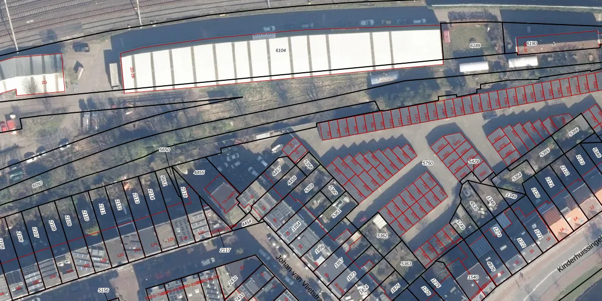 Het perceel waarop Johan van Vlietstraat 1-G staat heeft een oppervlakte van 3629 m². Dit is een zeer groot perceel. De perceeloppervlakte wordt geregistreerd door het Kadaster. Gedetailleerde informatie over de maten van dit perceel kunt u vinden in het rapport Kadastrale kaart met maatvoering van Johan van Vlietstraat 1-G.