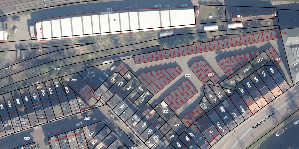 Het adres is gelegen op perceel 5750 in de sectie A en de kadastrale gemeente Haarlem. De kadastrale aanduiding is aldus HLM01-A-5750. Het perceel is met 3629 m² relatief groot. Het gemiddelde ligt in de kadastrale gemeente Haarlem op 328,37 m². Het grootste perceel in de kadastrale gemeente is 13,9 ha. Het kleinste perceel heeft een oppervlakte van 0 m². Op het perceel liggen in totaal 92 adressen. De huidige grenzen van het perceel zijn digitaal in de Basisregistratie Kadaster (BRK) geregistreerd op 21-10-2014.