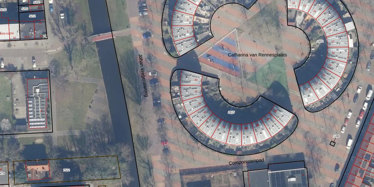 Het perceel waarop Johan Wagenaarring 32 staat heeft een oppervlakte van 1838 m². Dit is een zeer groot perceel. De perceeloppervlakte wordt geregistreerd door het Kadaster. Gedetailleerde informatie over de maten van dit perceel kunt u vinden in het rapport Kadastrale kaart met maatvoering van Johan Wagenaarring 32.