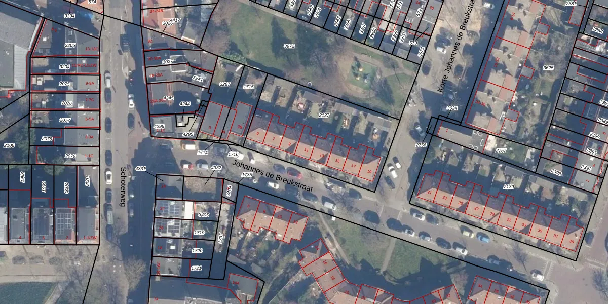 Het perceel waarop Johannes de Breukstraat 11 staat heeft een oppervlakte van 1150 m². Dit is een zeer groot perceel. De perceeloppervlakte wordt geregistreerd door het Kadaster. Gedetailleerde informatie over de maten van dit perceel kunt u vinden in het rapport Kadastrale kaart met maatvoering van Johannes de Breukstraat 11.