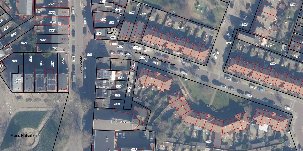 Het perceel waarop Johannes de Breukstraat 8 staat heeft een oppervlakte van 5970 m². Dit is een zeer groot perceel. De perceeloppervlakte wordt geregistreerd door het Kadaster. Gedetailleerde informatie over de maten van dit perceel kunt u vinden in het rapport Kadastrale kaart met maatvoering van Johannes de Breukstraat 8.
