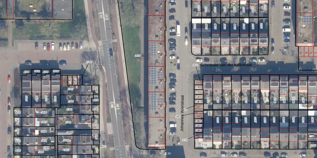 Het perceel waarop Johannes Wierstraat 48 staat heeft een oppervlakte van 2564 m². Dit is een zeer groot perceel. De perceeloppervlakte wordt geregistreerd door het Kadaster. Gedetailleerde informatie over de maten van dit perceel kunt u vinden in het rapport Kadastrale kaart met maatvoering van Johannes Wierstraat 48.