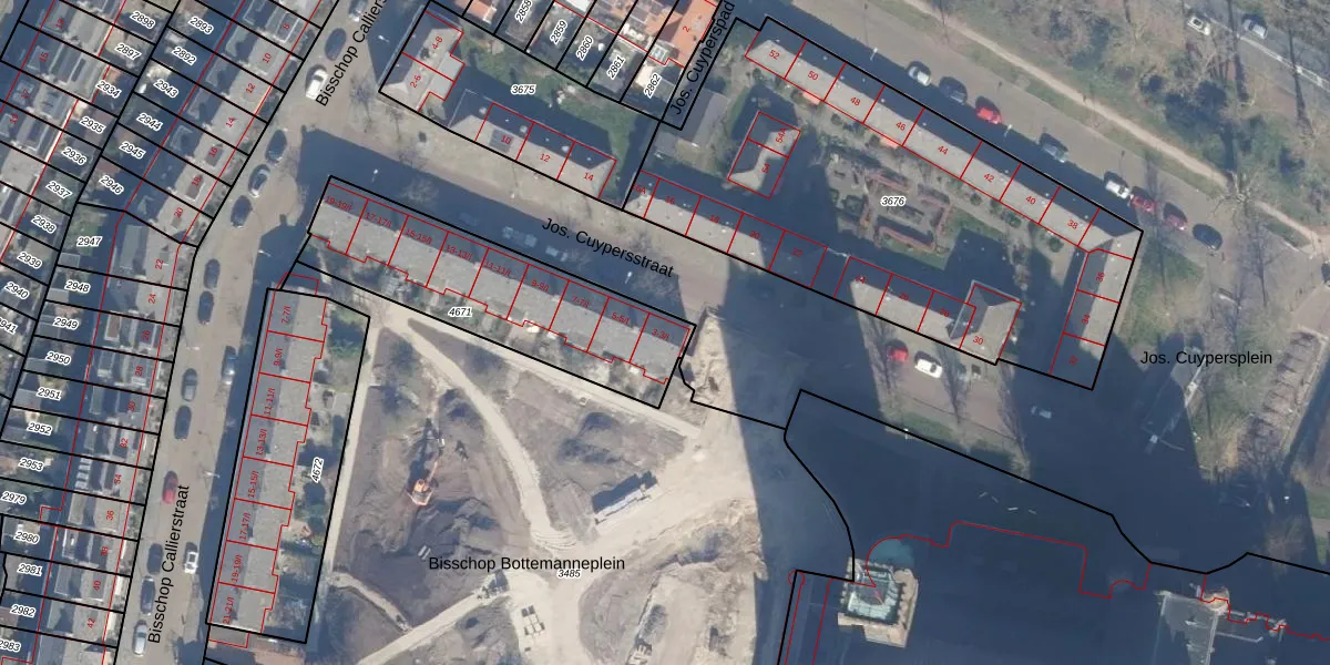 Het perceel waarop Jos. Cuypersstraat 3 staat heeft een oppervlakte van 805 m². Dit is een groot perceel. De perceeloppervlakte wordt geregistreerd door het Kadaster. Gedetailleerde informatie over de maten van dit perceel kunt u vinden in het rapport Kadastrale kaart met maatvoering van Jos. Cuypersstraat 3.