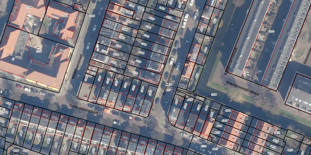 Gebruik de zoekbalk of klik op een perceel voor informatie over de adressen binnen dit perceel.