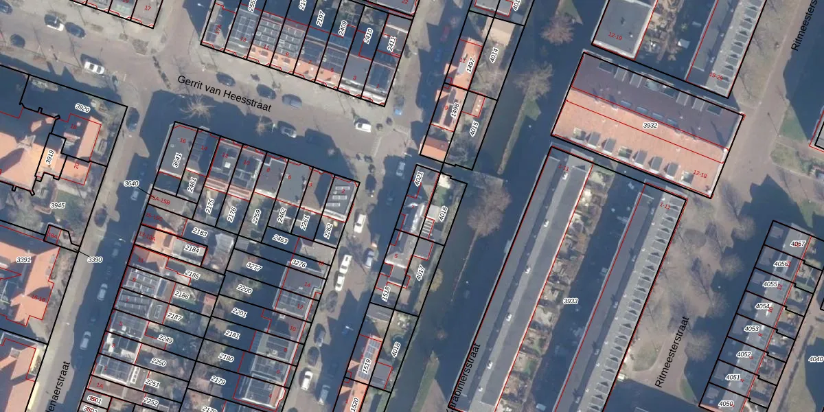 Gebruik de zoekbalk of klik op een perceel voor informatie over de adressen binnen dit perceel.