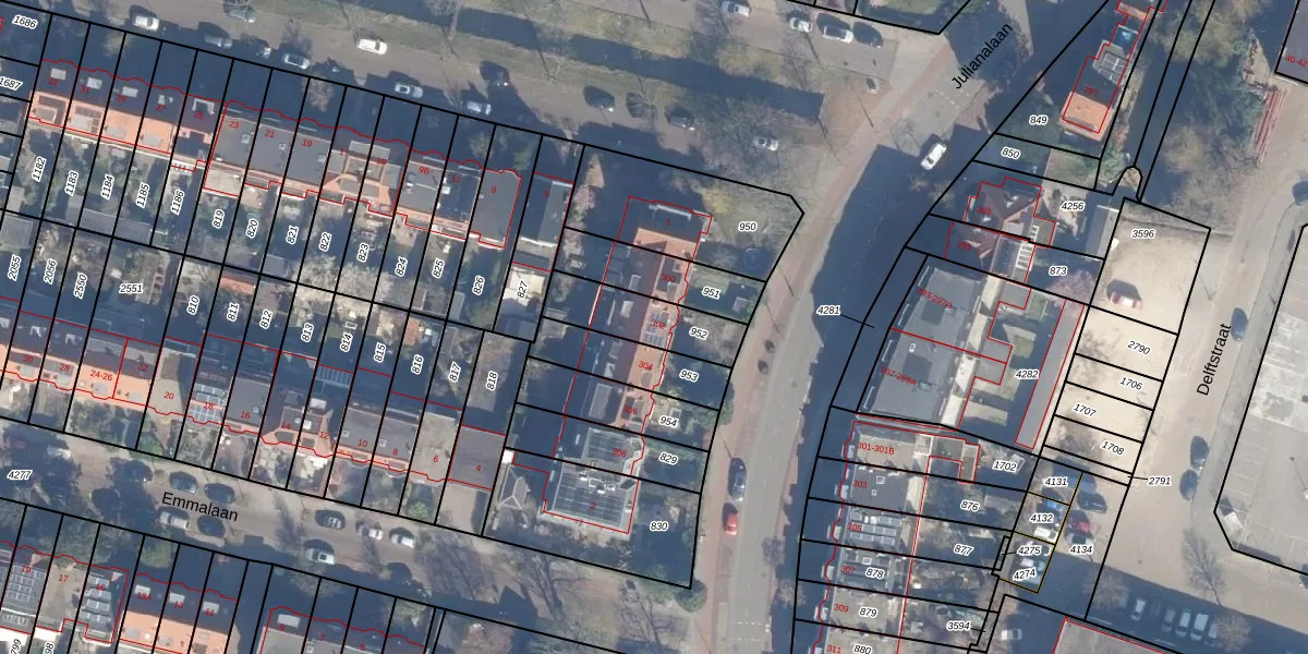 Julianalaan 302 is gelegen op kadastraal perceel HLM02T952. Deze kadastrale aanduiding is uniek en wordt gebruikt door het Kadaster om eigendomsrechten en andere zakelijke rechten vast te leggen. Het perceel maakt onderdeel uit van de kadastrale gemeente Haarlem.