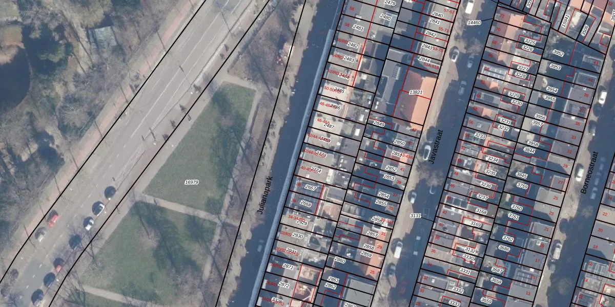 Het perceel waarop Julianapark 42-44 staat heeft een oppervlakte van 99 m². Dit is een klein perceel. De perceeloppervlakte wordt geregistreerd door het Kadaster. Gedetailleerde informatie over de maten van dit perceel kunt u vinden in het rapport Kadastrale kaart met maatvoering van Julianapark 42-44.