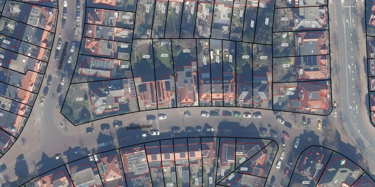Julianastraat 11 is gelegen op kadastraal perceel HLM01I2088. Deze kadastrale aanduiding is uniek en wordt gebruikt door het Kadaster om eigendomsrechten en andere zakelijke rechten vast te leggen. Het perceel maakt onderdeel uit van de kadastrale gemeente Haarlem.