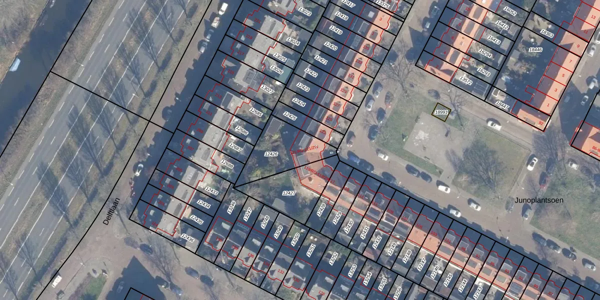 Het perceel waarop Junoplantsoen 121-RD staat heeft een oppervlakte van 370 m². Dit is een groot perceel. De perceeloppervlakte wordt geregistreerd door het Kadaster. Gedetailleerde informatie over de maten van dit perceel kunt u vinden in het rapport Kadastrale kaart met maatvoering van Junoplantsoen 121-RD.